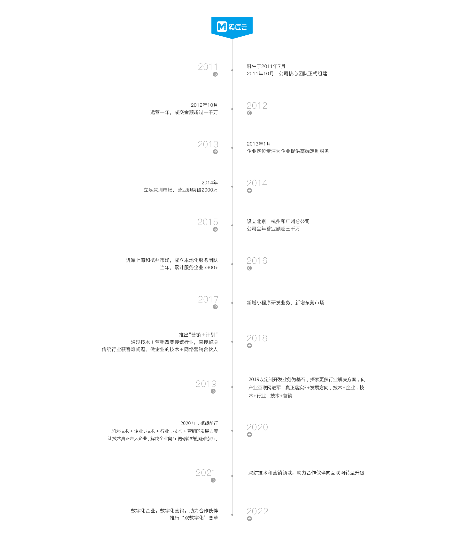 码匠云成立于2011年,服务过5000+客户,客户涉及各行各业。服务过的知名企业有:万科,大疆,滴滴出行,每日优鲜,印力集团,华润药业,华润银行等等。码匠云目前服务的区域有深圳,广州,东莞,北京,上海,杭州。